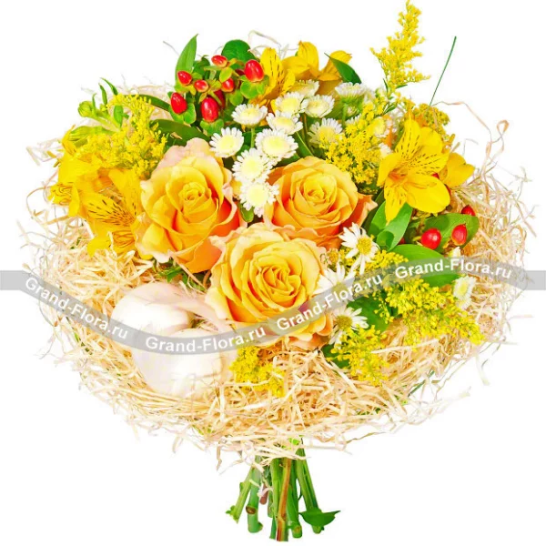 Нежный, солнечный, весенний букет из хризантем, роз, альстромерии и зелени – прекрасное дизайнерское решение. Оригинальность его заключается в дополнении из яиц, что подчеркивает тематику. Такая композиция станет отличным подарком близкому человеку на Пасху и позволит неординарно украсить праздничный стол. Станет залогом отличного весеннего настроения.